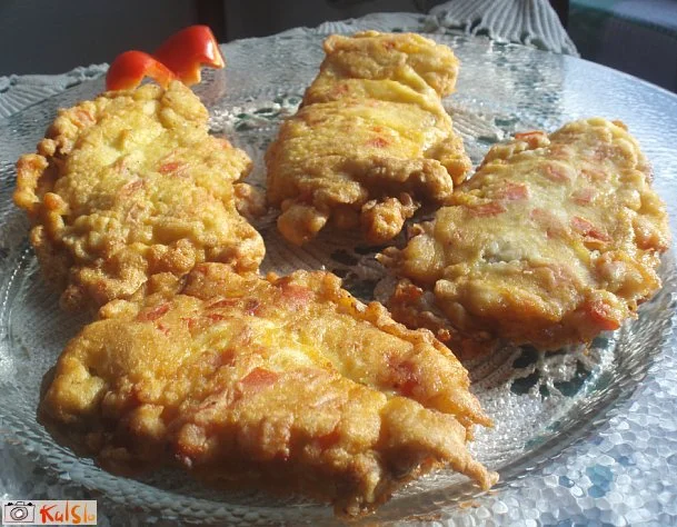 svinjski zrezki v slastni jajčni skorjici z rdečo papriko
