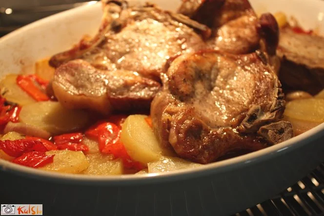 tudi jaz delam tako samo da dodam še po vrhu zelenjavo korenček , papriko,...kar imam pri roki in pekač pokrijem z alu folijo da kotleti ostanejo sočni se ne izsušijo, če imate pa radi bolj zapečene pa samo kakšni 15 minut pred koncem folijo daste dol in se lepo zapečejo