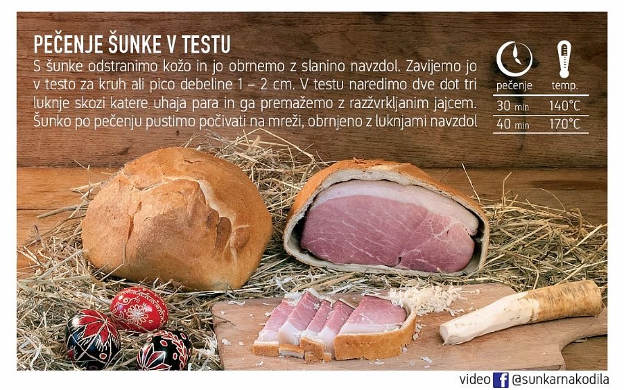 Šunki Kodila odstanimo kožo in jo položimo na razvaljano testo za kruh ali pico. Šunko zavijemo in na zgornji strani naredimo luknje za uhajanje pare. Vse skupaj premažemo z jajcem.