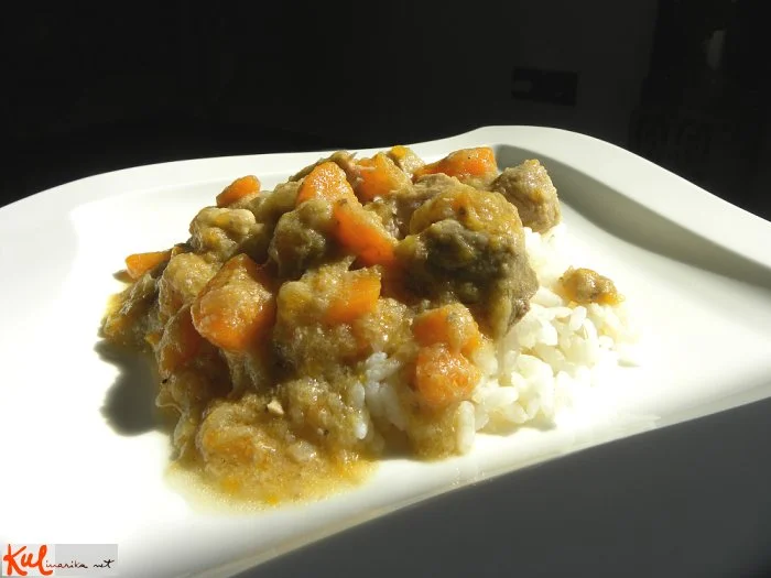 Na olju dušimo zelenjavo narezano na kocke, dodamo na kocke narezano meso ter dušimo toliko časa, da meso spremeni barvo.