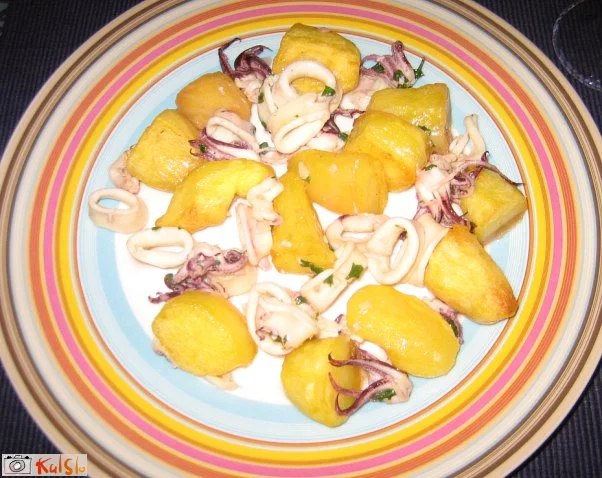 Hvala za odličen recept.malo sem prilagodila recept.V pekaču sem najprej popekla krompir, ga dala samega za 20 minut v pečico nato sem dodala čebulo, papriko in marinirane lignje(vino,začimbe..) ter pekla še 20 minut na koncu za 2 minuti prižgala žar da se je mlo zapeklo, bilo je odlično.pa še to,krompir sem naredila s česnom(vsak olupljen krompir sem zarezala in med posamezne zareze dala tanko rezino česna ki se je med peko skoraj raztopil in dal okus).Recept si zasluži čisto petico.