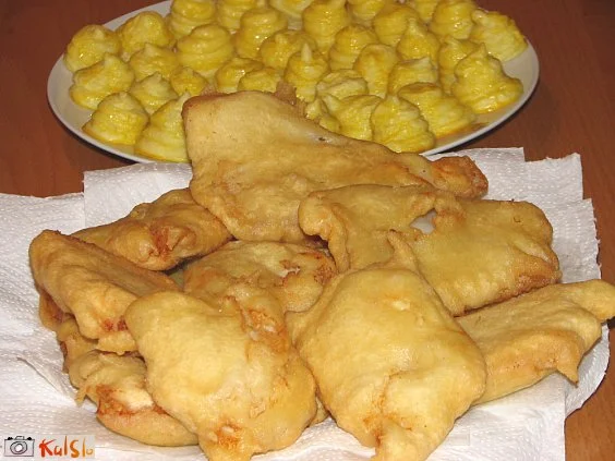 Iz navedenih sestavin naredimo testo kar v mešalniku. Testo naj počiva okoli 20 minut. Tik pred cvrtjem dodamo v testo še sneg iz dveh beljakov. Ribe ocvremo in sicer tako, da jih takoj, ko jih pomočimo v testo, spustimo v vroče olje, sicer testo steče dol. Ko so ribe lepo rumene, jih vzamemo ven in odlagamo na papirnato brisačko, da se odvečno olje odcedi. Poleg ponudimo krompirjevo solato ali samo majonezo, lahko tudi krompir s peteršiljem in solato.