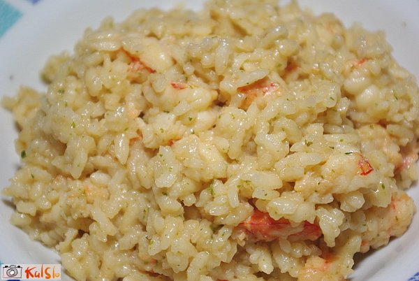 škampi, česen in olivno olje v kombinaciji z rižem