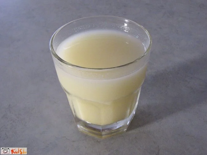V lonec vlijemo liter mrzle vode. Dodamo koruzno moko in dobro premešamo. Pokrijemo in pustimo stati v hladilniku 24 ur.