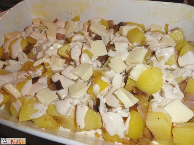 Krompir narežemo na manjše kocke in ga kuhamo v slani vodi približno 5 do 10 minut. Čebulo in slanino narežemo na drobno (lahko tudi kakšno salamo, pršut, klobaso...), in oboje na hitro prepražimo na malo olja. Krompir ter slanino s čebulo pretresemo v namaščen pekač in premešamo. Smetani za kuhanje dodamo malo popra ter čilija v prahu (po okusu) in z mešanico prelijemo vsebino pekača. Na koncu dodamo še narezane Zdenka sirčke, ki se v pečici lepo zapečejo. Vse skupaj nato pečemo še približno pol ure na 200 stopinj, če želimo, da se bolj zapeče, zadnjih pet minut pečemo na 230 stopinj.