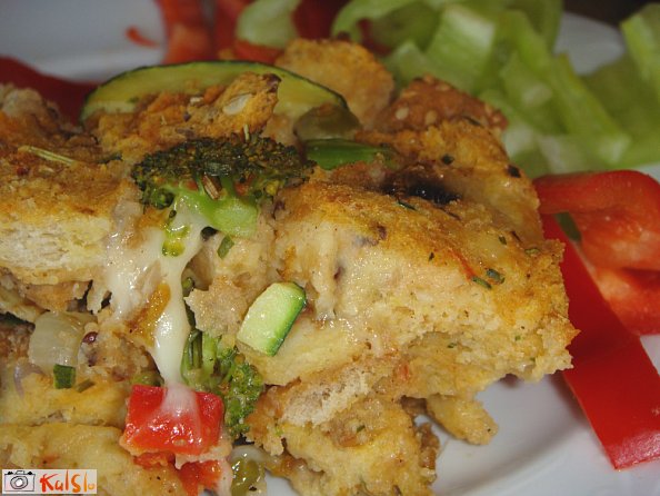 Dodala sem podušen korenček in bučko. Bilo je zelo dobro, podobno kruhovim cmokom. Morda sem dala preveč kruha ali pa premalo sira, tako da mi je poleg manjkala kakšna omaka. Sicer pa super ideja kako porabiti nekaj dni star kruh. Pa hitro narejeno!!