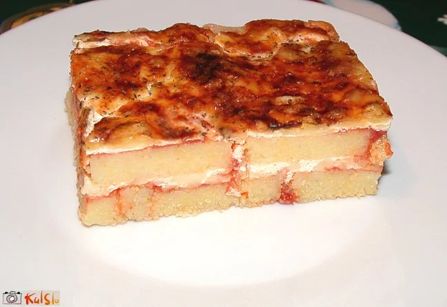 Zloženka se lepše reže, ko je malo ohlajena. Naši mali možici so jo imeli naslednji dan še raje, narezano na kocke.