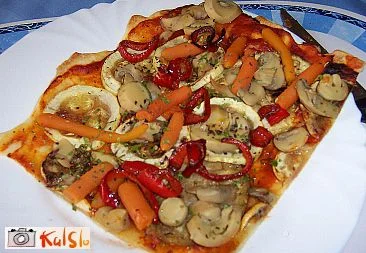 Razvaljano testo pečemo v pečici 5 minut pri 250 stopinjah. Nato ga vzamemo iz pečice in namažemo s paradižnikovo mezgo ter naložimo zelenjavo in gobice in začinimo s poljubnimi začimbami za pico.