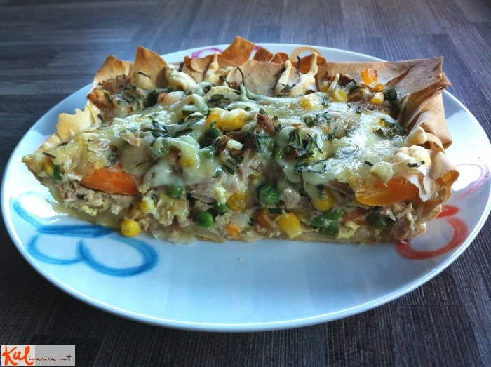Najbrz je testo samo na dnu.Jaz sem to pito malo priredila in sem jo delala s testom od pite s porom iz baze.