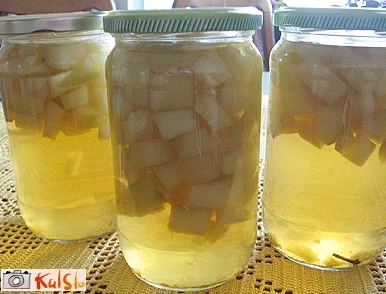 Jaz sem jih delala sicer po rahlo drugačnem receptu, ampak vseeno. Kompot je SUPER! In vsi mislijo, da je ananasov. Vredno poskusit. Uporabno! K.
