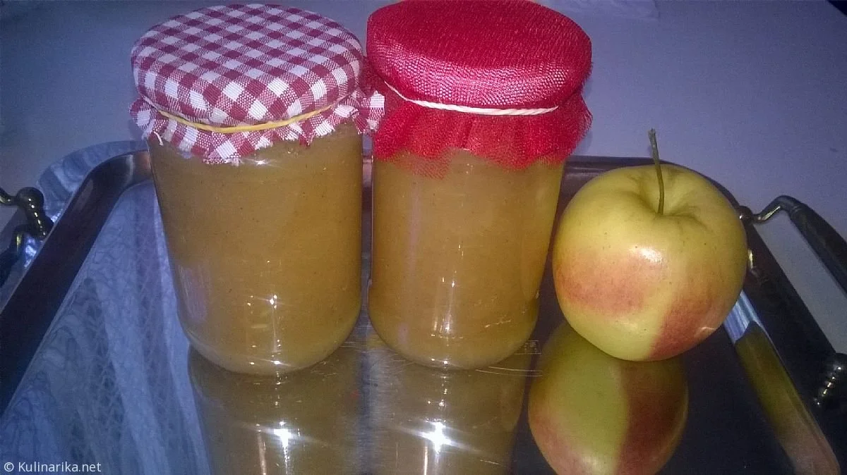 3. Zdušena jabolka pretlačimo s paličnim mešalnikom in takoj, ko so še vroča, napolnimo kozarčka, ki ju zapremo s sterilnima pokrovčkoma. Kozarčka za nekaj minut obrnemo na pokrov, da izpodrine zrak, tako se čežana ne bo pokvarila in ju pokrijemo do naslednjega dne.