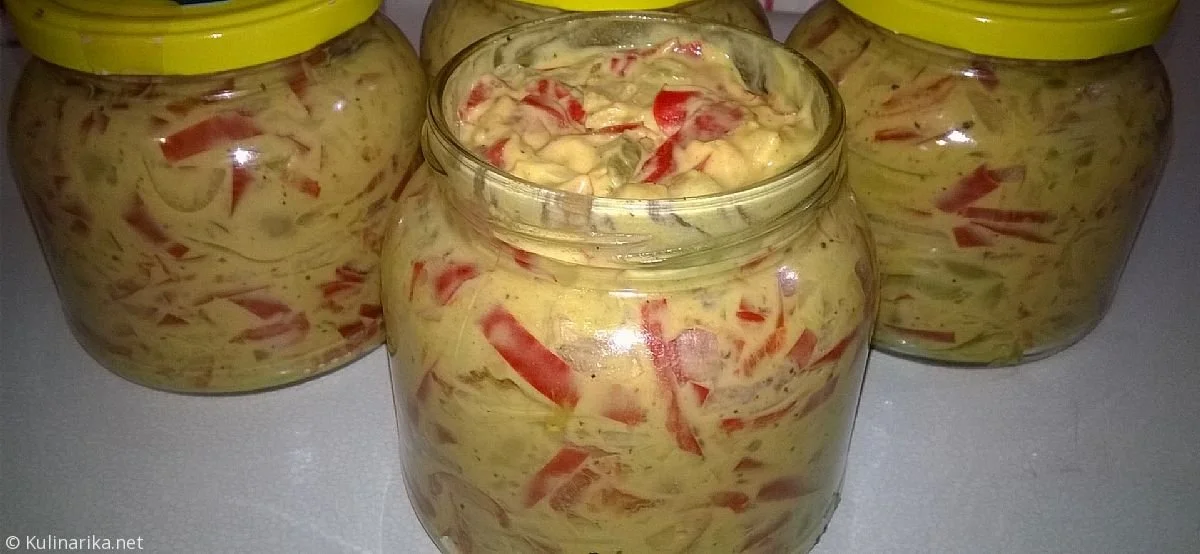 2. Posebej v malo večji skledi zmešamo olje in gorčico. Dobiti moramo gladko (homogeno) maso. K tej povezavi damo dobro odcejeno in ohlajeno papriko, dobro premešamo, napolnimo čiste kozarce in po vrhu prelijemo žlico olja. Tesno zapremo in takoj odnesemo v temno in hladno shrambo.