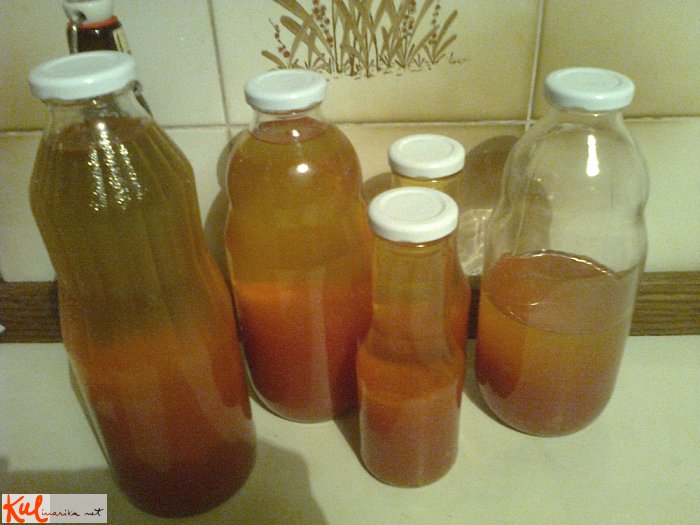 sok * , gosti deli in lupine od paradižnika - ki smo ga dobili ob lupljenju in rezanju paradižnika