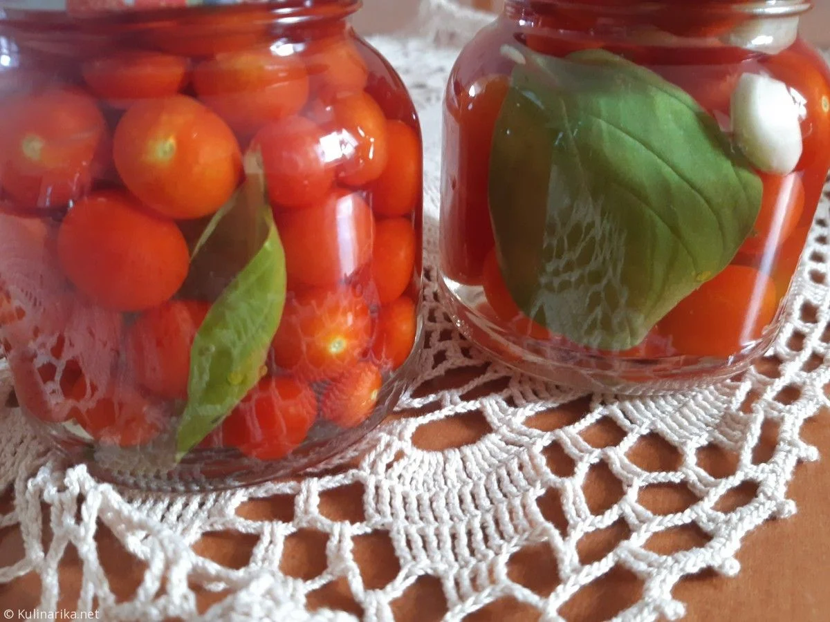 V kozarec cca 250 ml damo paradižnike, česen, šalotko, baziliko, sladkor, oljčno olje in zalijemo z mešanico kisa za vlaganje.