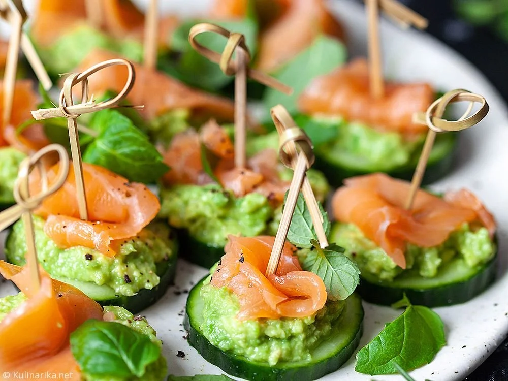 hitri prigrizki za nenapovedane goste – ti kanapeji s kumaro, avokadom in dimljenim lososom so pripravljeni v samo 10 minutah, a kljub temu izgledajo praznično.