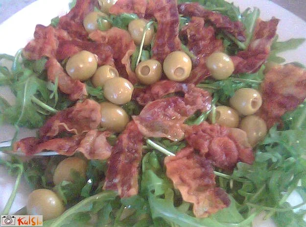 pražena, pikantna panceta na rukoli