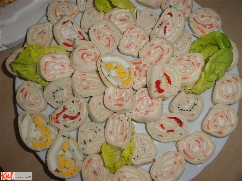 Zvitke zvijemo po krajšem koncu in ovijemo z alu folijo. Počivajo naj v hladilniku vsaj kako uro, lahko jih pripravimo dan prej. Preden jih postrežemo gostom, lahko zvitke na hitro popečemo z vseh strani na maslu, kar jim da božanski okus.