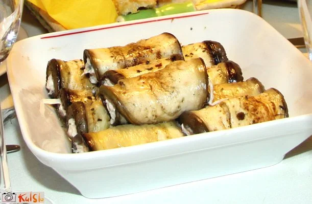 Jajčevce po dolgem narežemo na 0,5 cm debele rezine, solimo, popramo in opečemo na olivnem olju. V plasteh jih polagamo na krožnik in vmes posipamo z baziliko. Za nadev zmešamo namaz, smetano, tunino, kapre in na tanko narezan por, solimo in popramo po okusu. Na vsako rezino ohlajenega jajčevca damo nekaj žličk nadeva in zvijemo v zvitek.