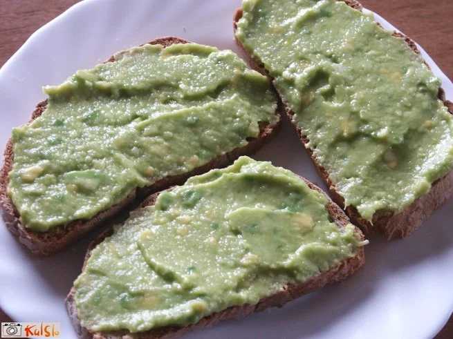 5Kupimo zrel avokado - ko ga primemo, mora biti mehek. Potem zarežemo v lupinico (ne pregloboko, da ne poškodujemo peške). Nato ga prepolovimo, odstranimo peško in izdolbemo meso. Meso damo v posodico, ga pokapljamo z limono (da ne oksidira in da dobi okus), potem pa solimo in popramo po želji. V ponvi opečemo kruhke in nanje namažemo namaz.