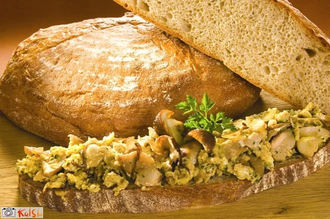 enostaven recept za pripravo mase s prepraženimi jurčki, jajci, sirom in zelenjavo, s katerimi obložimo kruhove rezine