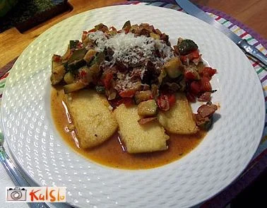 skuhano, ohlajeno polento, ki jo narežemo na za prst debele rezine, katere prepražimo na malo masla ali olja (glej sliko).