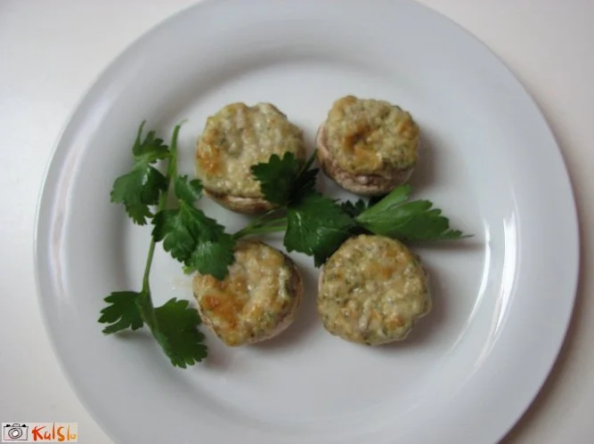 Gobje klobuke zložimo v namaščeno ognjevarno posodo (pekač). Polnimo jih z nadevom, potresemo z naribanim sirom in pečemo v pečici pri 200 stopinjah 10 minut (jaz sem jih pekla najmanj 15 minut).