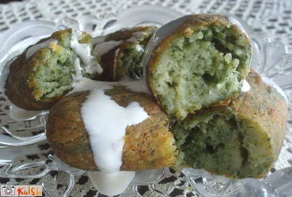 Hladnemu pireju dodamo soljeno špinačo in moko, na hitro pregnetemo in oblikujemo večje svaljke (cca. 5 cm), ki jih ocvremo v vročem olju.