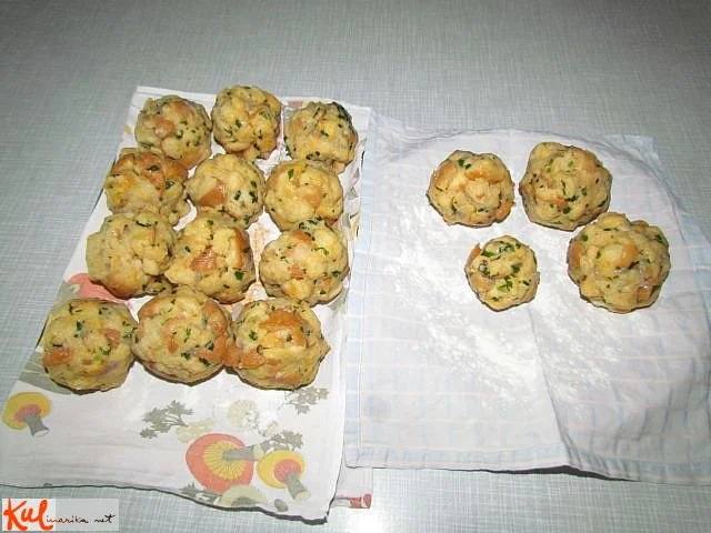 Z mokrimi (!) rokami iz prepojene mase oblikujemo cmoke - manjši ko bodo, prej bodo kuhani. Odlagamo jih na pripravljene krožnike ali pladnje, in če jih takoj ne porabimo, jih lahko tudi zamrznemo. Čas kuhanja, ko voda zavre: 10 - 15 minut.