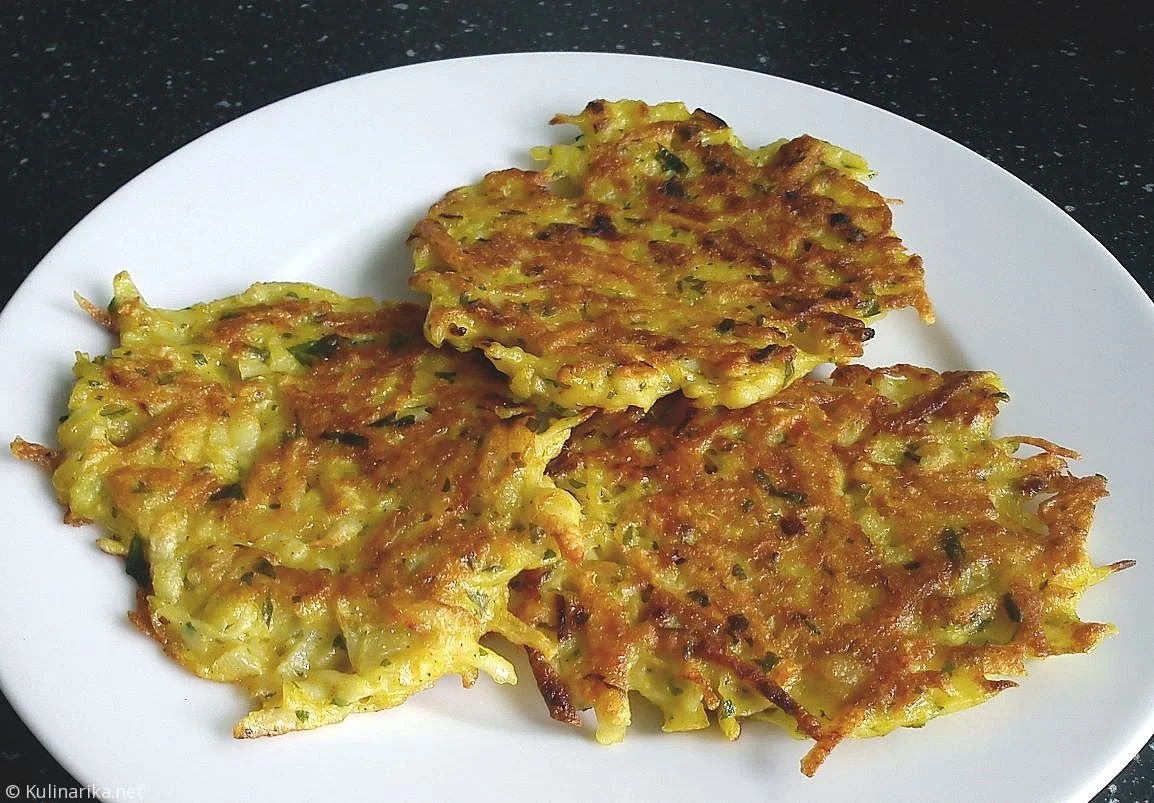 5Naribamo krompir na drobno in ga pustimo, da se iztisne voda. Dodamo moko, jajca, česen, peteršilj in malo vegete ter sol. Vse skupaj dobro zmešamo in na vroče olje polagamo z žlico, nato naredimo majhne zrezke. Na vsaki strani jih zlato popečemo.
