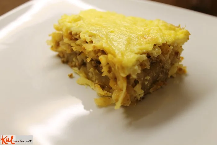 Takšna musaka je manj zamudna, ker se krompir hitreje speče in ker ga ni potrebno rezati in zlagati po plasteh.