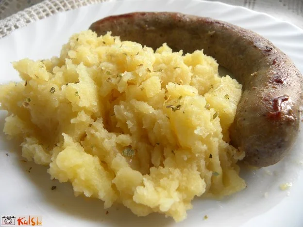 Olupljen in na pol prerezan krompir skuhamo v slanem kropu. Na olju dušimo sesekljano čebulo, dodamo tretjino vroče vode, v kateri smo raztopili kocko. Ko se čebula zmehča, dodamo odcejen krompir. Malce ga pretlačimo ter dodamo ostanek vode. Tik pred koncem začinimo z baziliko.
