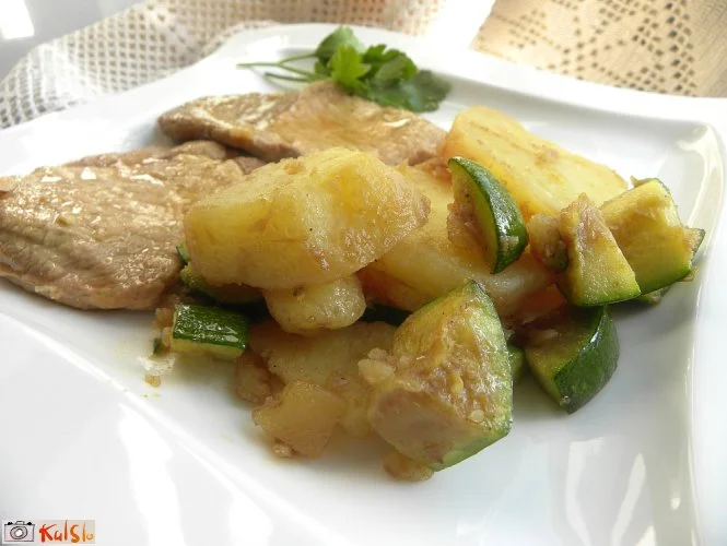 Včeraj sem to jed pripravila za kosilo s to razliko, da sem namesto čebule uporabila por, poleg tega pa sem bučke narezala na kolobarje in jih najprej popekla ter na koncu rahlo primešala praženemu krompirju. Zelo dobro kosilo.