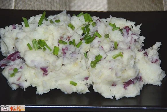 Ne, tale krompir ni olupljen. Tole kar je rdeče-vijoličasto med belim so olupki. Lahko seveda narediš z običajnim krompirjem, samo pazi, da ni prestar, ker olupki v tem primeru niso tako dobri.