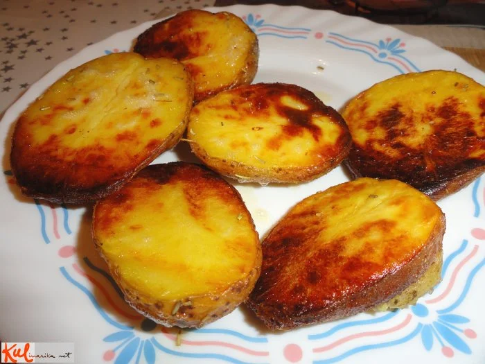 Tak krompir se pri nam v zimskem času velikokrat dela. Krompir prerezemo na pol in ga z oljem premazemo. Sprva ga pecemo na manjši temperaturi potem pa povečamo na max. temp., da se lepo zapece.