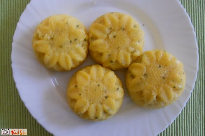 Kaj vem, na nek način je tako treba solit - jaz sem uporabila vegeto in je bilo super. Pa vlila sem v modelček za kruh in je nastala tudi na pogled lepa polenta. Mi je samo žal, da sem na česen pozabila, prihodnjič poizkusim še to. Nekaj polente je ostalo, pa sem jo drugi dan imela za zajtrk - namesto kruha - in namazala s pašteto. Odlično!!!