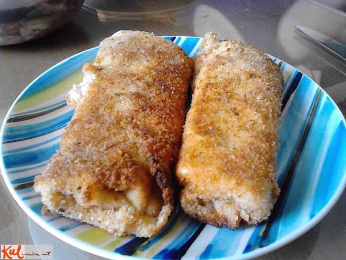 Palačinko zvijemo in jo damo v moko, jajce in drobtine. Položimo v vroče olje in pečemo kratek čas. Odlično se poda zraven kuhanega ali pečenega krompirja.