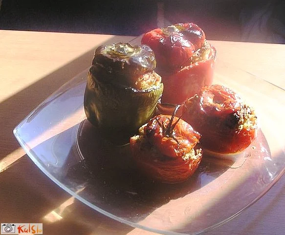 polnjen paradižnik in paprika