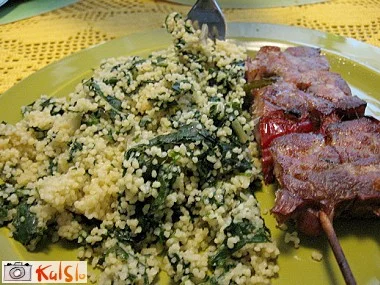 Včeraj smo ponovno jedli tale kuskus, pa bi rada opozorila, da ga je za dve osebi dovolj samo 10 dag in prav toliko blitve. Iz gornje količine sem "nakuhala" 5 porcij, bomo še danes pogrevali