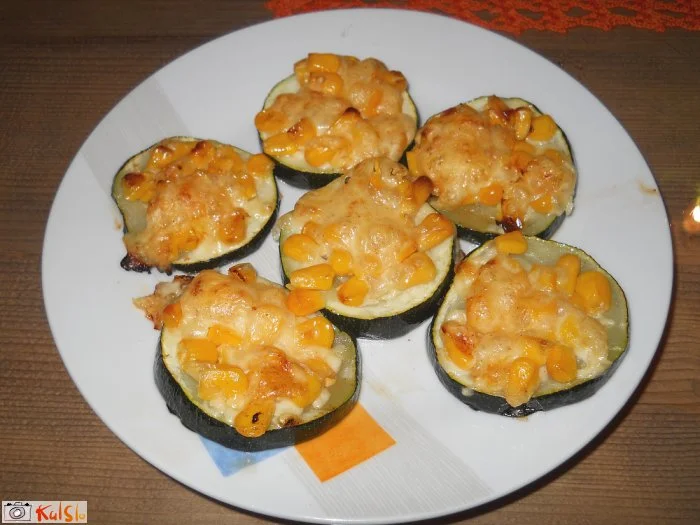 Bučke operemo in narežemo na kolobarje, če želimo, jih posolimo, nanje potresemo koruzo, po vrhu pa naribamo sir. Damo na pekač in pečemo v pečici na 220 stopinj toliko časa, da se sir stopi in postane hrustljav.