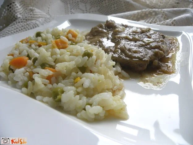 Riž skuhamo v slanem kropu, ga odcedimo ter splaknemo z vročo vodo. Dobro odcejen riž primešamo k dušeni zelenjavi.