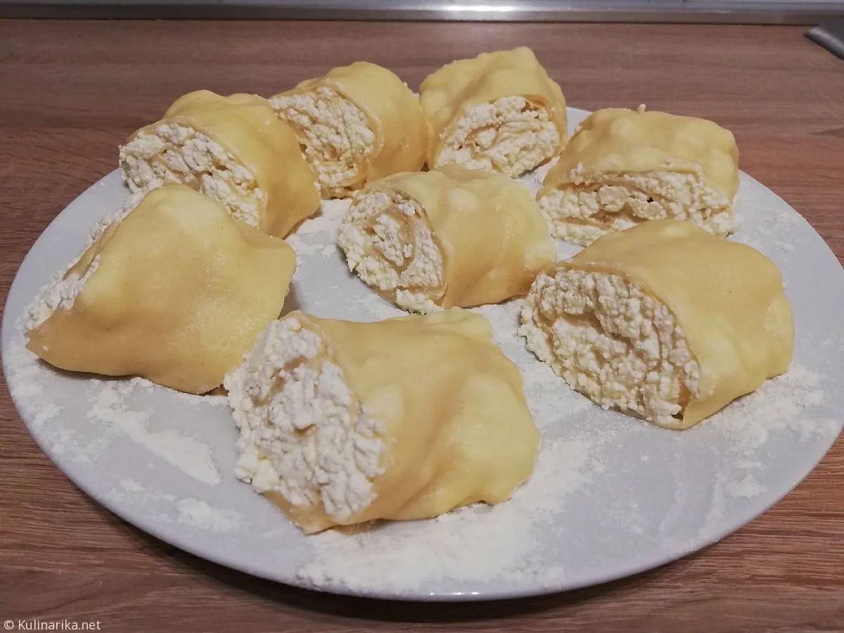 Testo iz moke, jajca, soli, olja in vode zamesimo. Premažemo ga z oljem, pokrijemo s krožnikom ali skodelo in ga pustimo počivati najmanj pol ure. Medtem si iz skute, smetane ter jajca pripravimo nadev. Testo razvlečemo na mizi, da je tanko, meni vedno sega čez rob mize. Če nastane kakšna luknja ni nič hudega, posujemo ga s pripravljenim nadevom in zvijemo. Narežemo na poljubno velike kose in zakuhamo v vodo, ki smo jo solili in dodali kislo smetano.