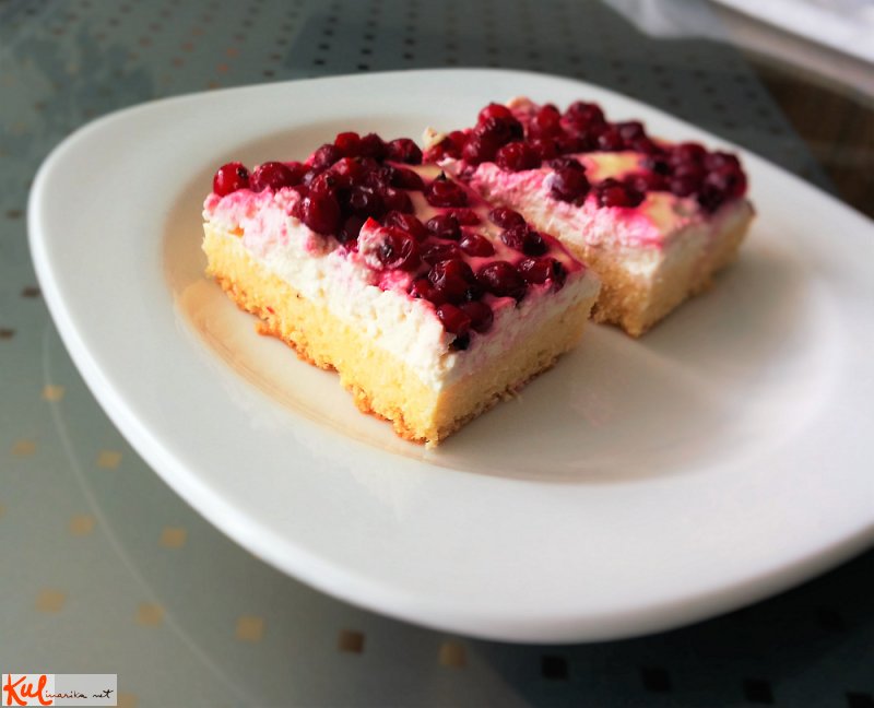 5. Pečen biskvit malo ohladimo, prelijemo s kremo in potresemo z jagodičevjem.