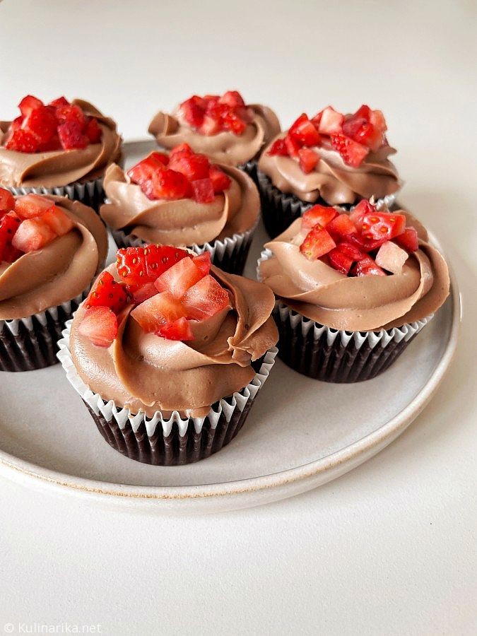 Čokoladni cupcakesi z jagodami morajo biti shranjeni v zaprti škatli v hladilniku.