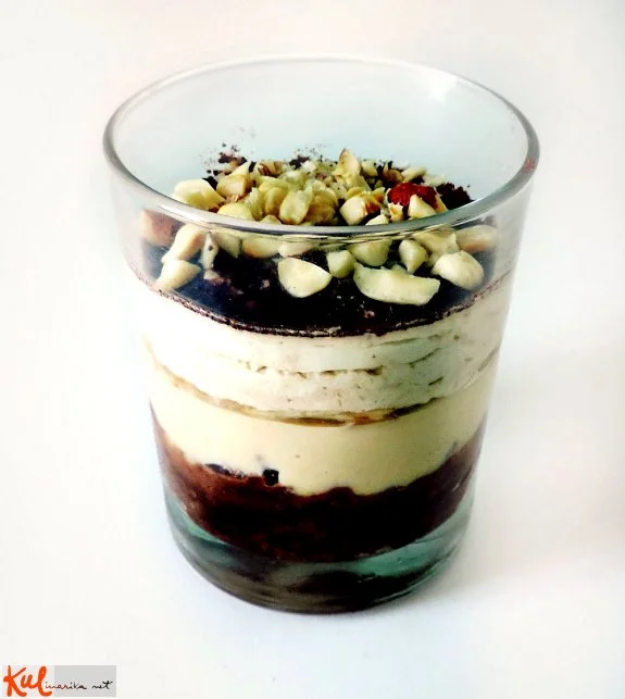 piškoti, napolitanke, puding, banane, smetana, lešniki, ..