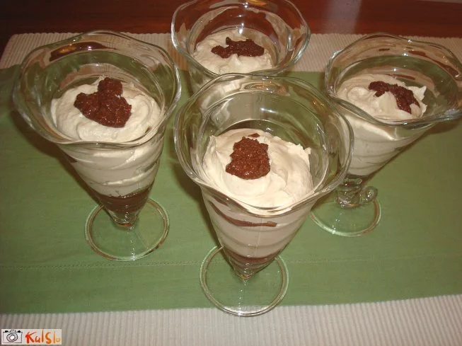 Kozarce napolnimo z drobljencem in kostanjevim moussom in postavimo za uro ali dve v hladilnik. V kolikor bodo kozarci ostali v hladilniku dlje, ne bo nič narobe, edino drobljenec se bo strdil. Zato je najbolje, da hitro pojemo.