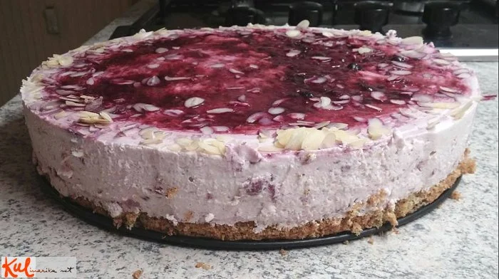 2. Kremo naredimo po receptu na ovitku od želatine in jo nadevamo na ohlajen biskvit. Po vrhu razporedimo sadje.