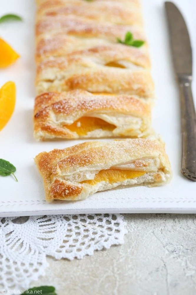 Gre za listnato testo, nadevano s skutno kremo, ki je obogatena z dišečimi začimbami in breskvami.