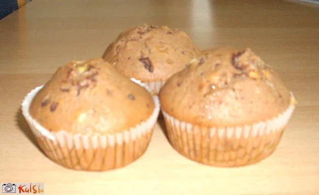 Najprej zmešamo sladkor, pecilni prašek in jajca (rumenjake). Nato dodamo olje, mleko, kakav, moko in stepene beljake. Na koncu dodamo še na kocke narezano čokolado. Vse skupaj dobro premešamo in damo v za to pripravljene modelčke za mafine. V vsak modelček damo 2 veliki žlici. Pečemo 20 minut na 180 stopinj.