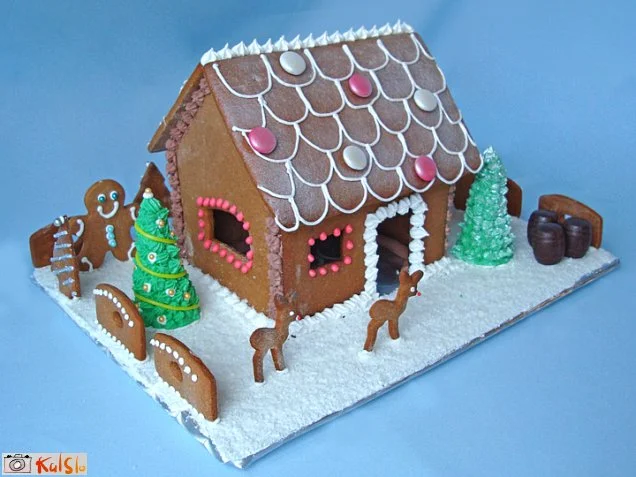 svetujem pa, da se stene hiske dekorira predno je hiska sestavljena, tako se veliko lazje dela. Se ena ideja, okna v hiski lahko predno se testo spece napolni z zdrobljenimi trdimi bonboni - (http://sweetpaprika.wordpress.com/2010/11/29/stained-glass-cook)