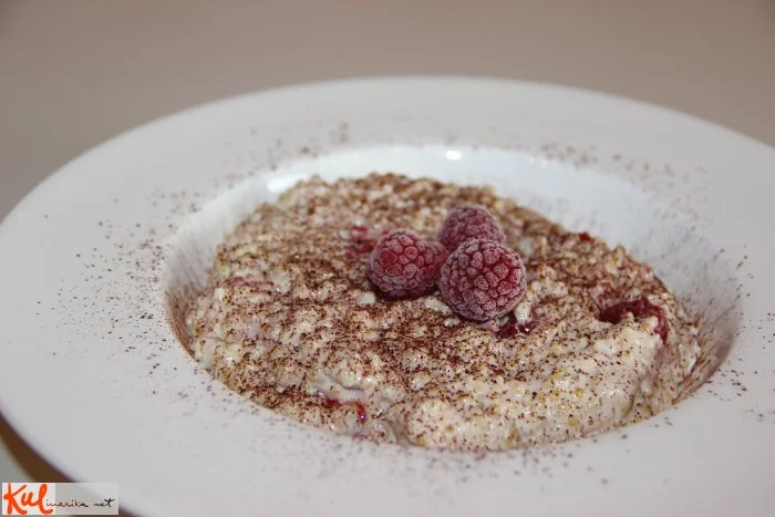 Zamrznjene maline zato, da ne razpadejo, ko jih vmešamo v toplo kašo. Lahko uporabite tudi drugo zamrznjeno sadje - meni so v kombinaciji z vanilijo najboljše maline.